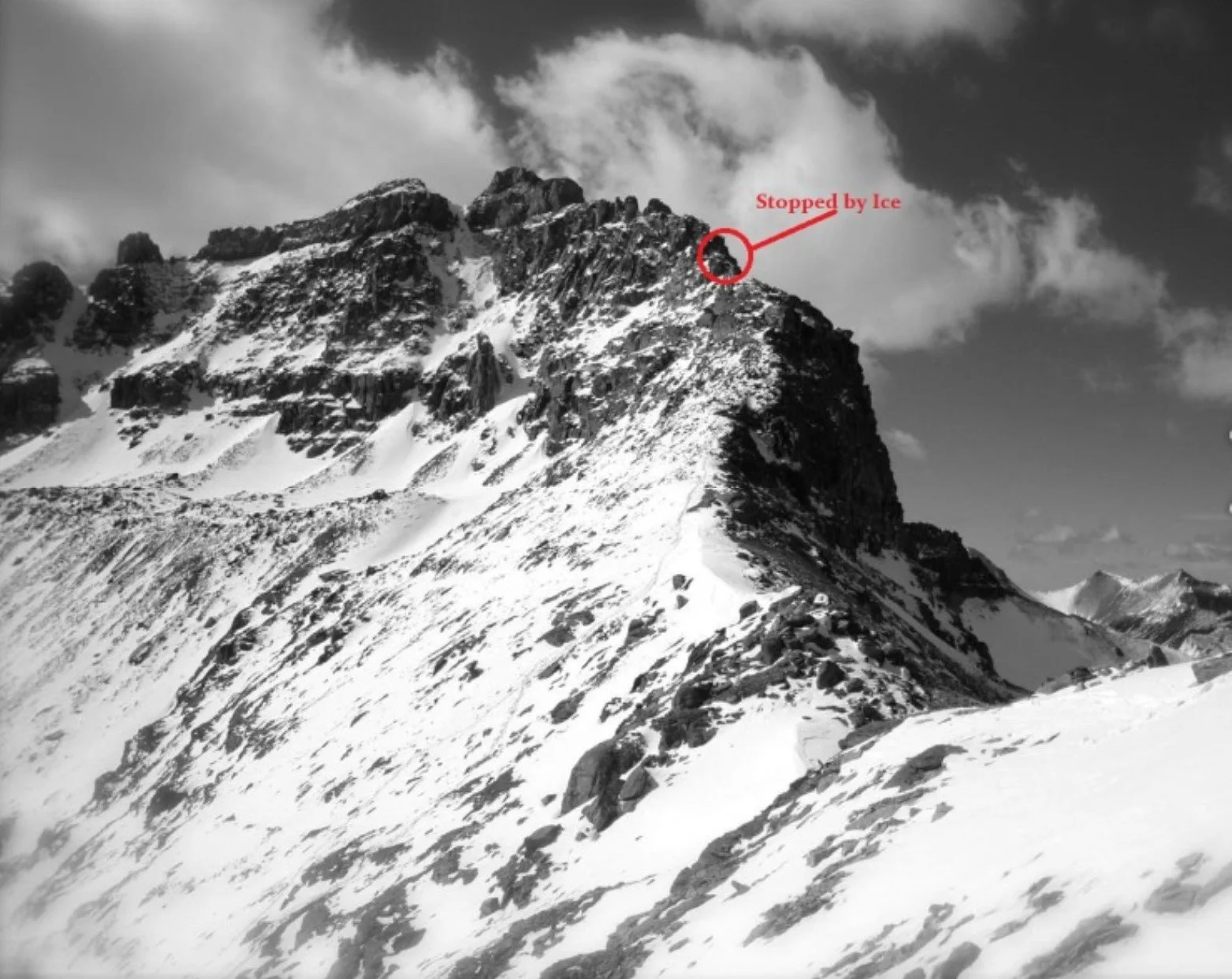 It’s a great difficulty level to stay in shape for harder 4th and some easy 5th. Being able to manage loose rock and scree (think Elk Mountains or San Juan’s) proficiently can become a skill. I’ve had some good conversations with Jim DiNapoli over ratings and how, as a technical climber and photographer, this grade level actually scared him because you couldn’t really trust anything. Jim was a good guy; rest in peace buddy. “Huh, look at that.” I said. “I wasn’t expecting that.” I got stopped by a 6’-10’ ice step.