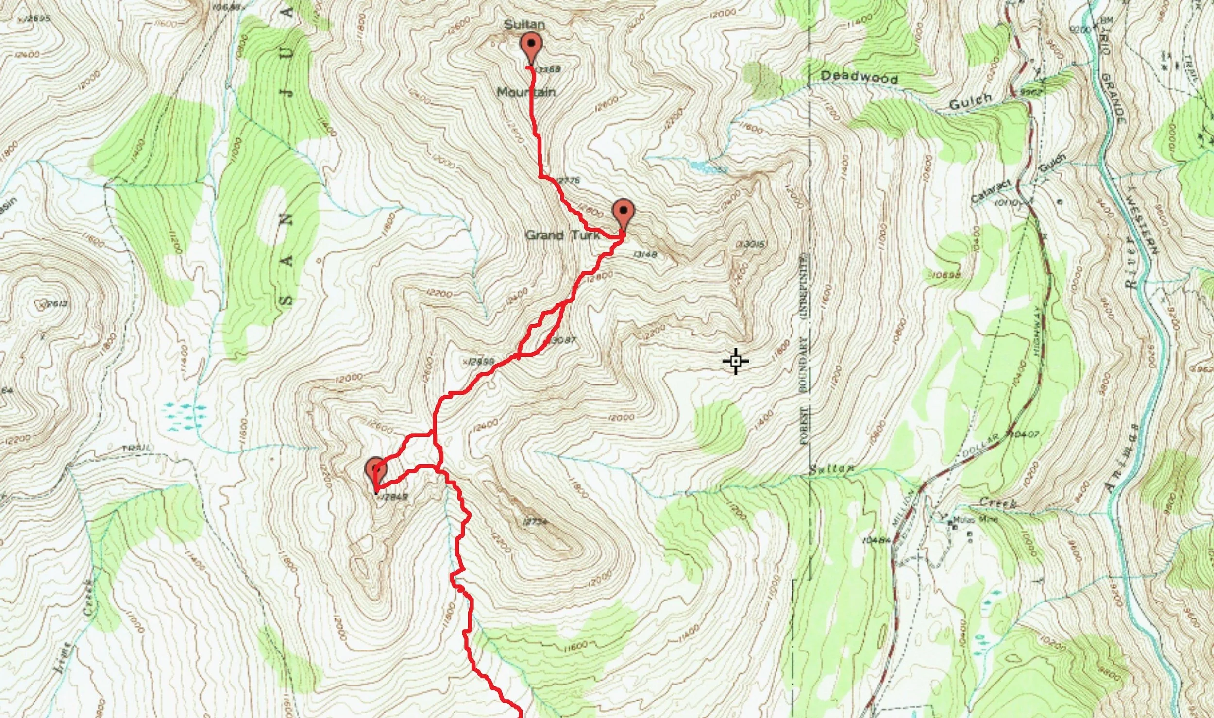 My tracks descending from the Vermilion/Fuller saddle