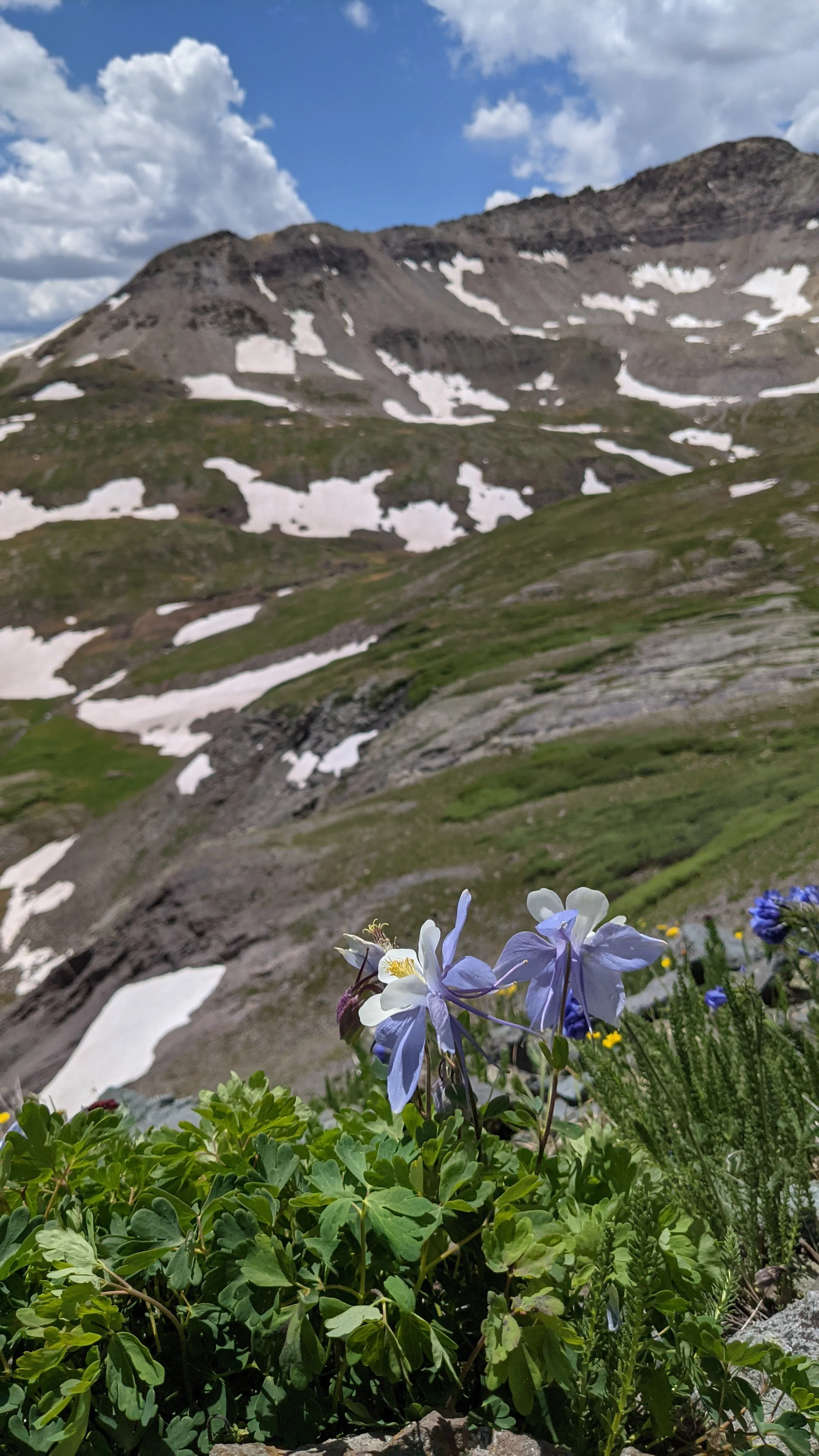 I however, found myself wandering all over the ‘Jackson Pollack’ basin (made so because of all the wildflowers), looking for mines (found some) and taking pictures of Trico Peak. Regina was all business though, staying to the trail and keeping to the task at hand, gaining the summit of 13,510.