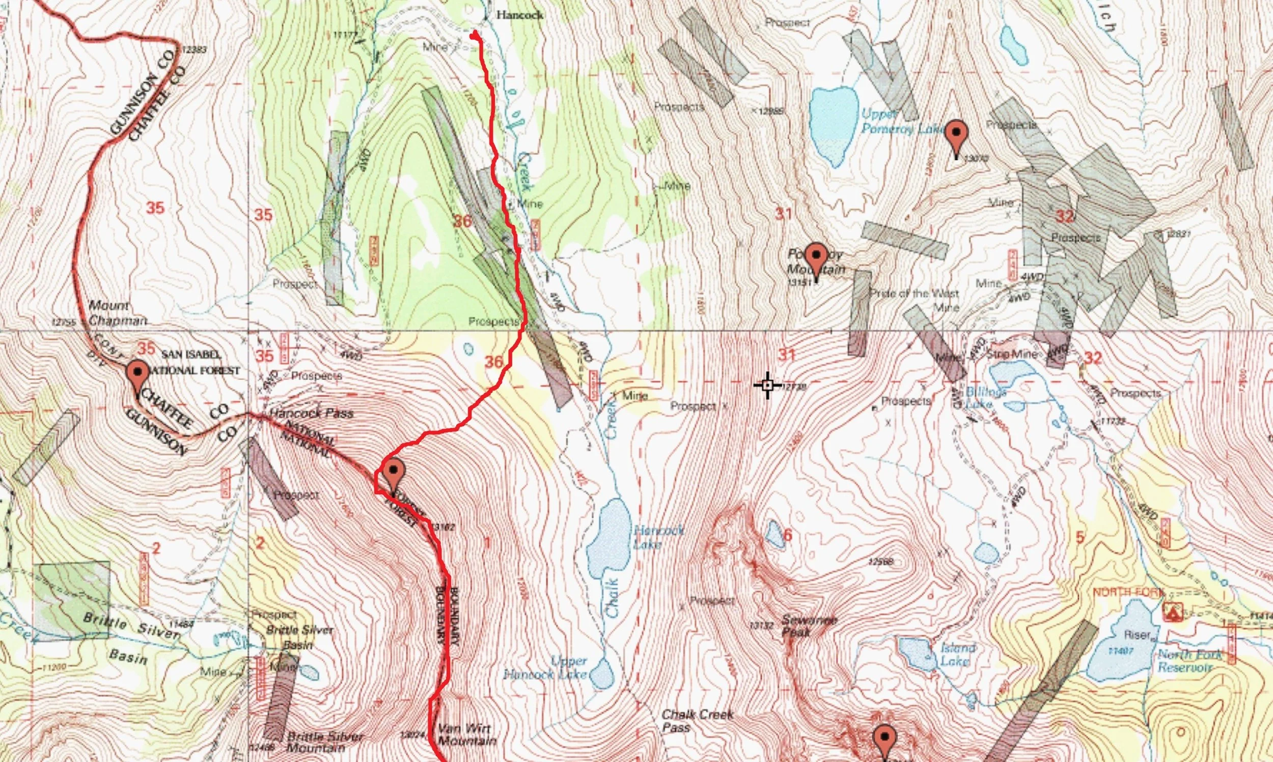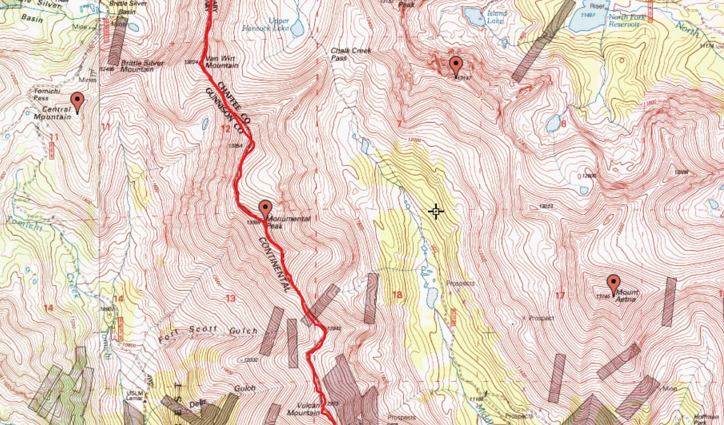 13.14 miles & 6,285' of gain | Class 2 | Start: Lower Boss Lake TH (10,480’) | Finish: Alpine Tunnel TH (11,160’)